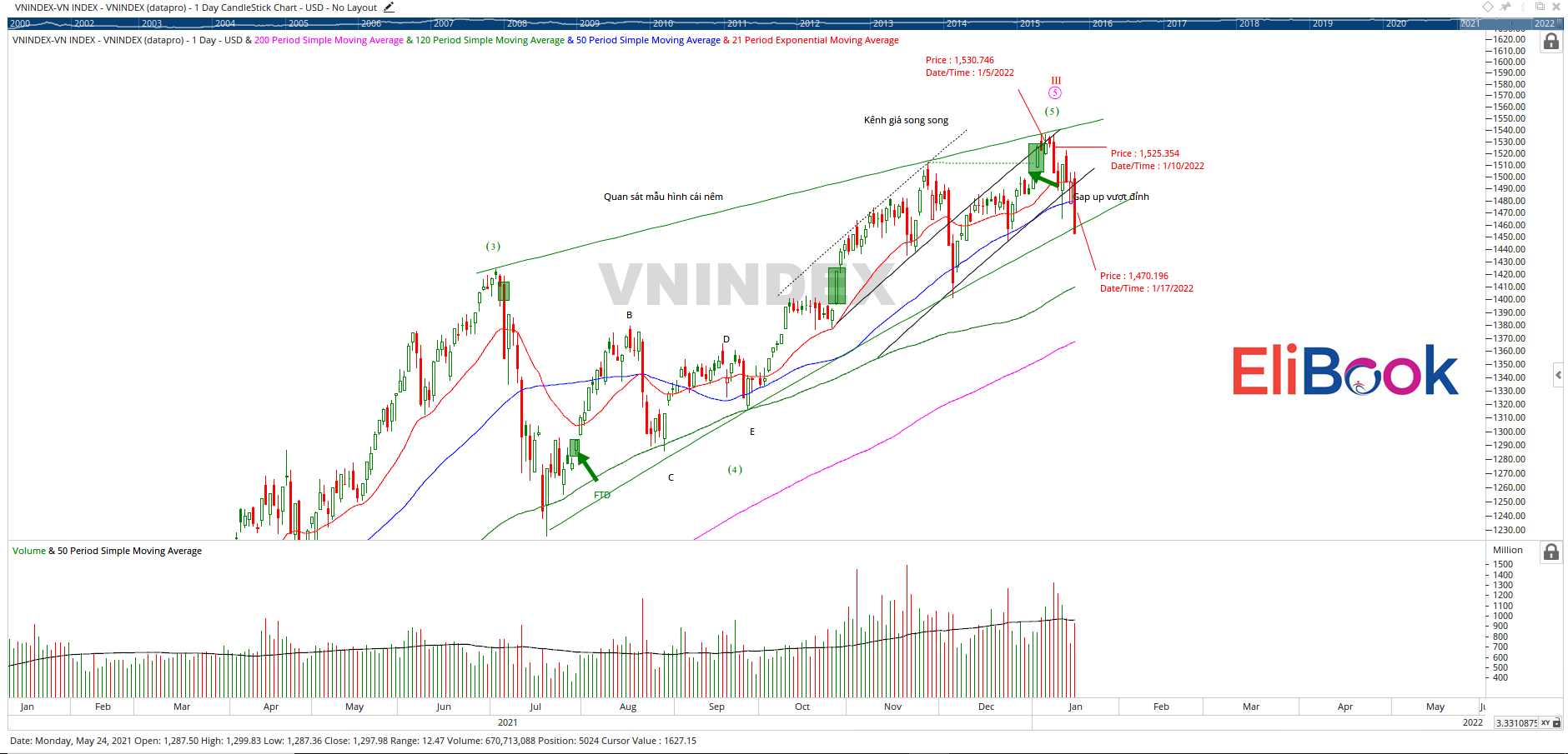 Chỉ số VN-Index -2.89% với khối lượng cao hơn phiên trước. Đây là ngày phân phối mạnh đi kèm với việc giá thủng mất mốc MA50 ngày sau khi đã kiểm tra 3 lần (đây là lần thứ tư).