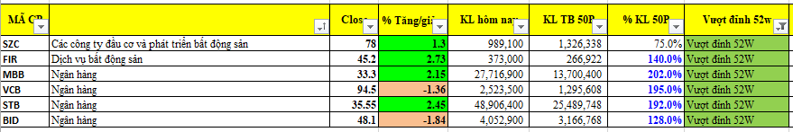 Danh sách các cổ phiếu vượt đỉnh 52 tuần ngày hôm nay có 4 trong 6 mã là ngành ngân hàng như MBB (+2.1%), VCB, STB (+2.4%), BID. Cổ phiếu LPB lại đóng trần trong phiên giao dịch ngày hôm nay.