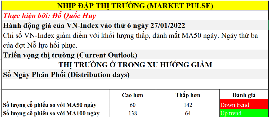 Thị trường hiện tại vẫn chưa cho thấy sự cải thiện về sức mạnh khi số lượng cổ phiếu nằm dưới MA50 ngày vẫn đang chiếm áp đảo so với số lượng cổ phiếu nằm trên MA50 ngày. Độ rộng của thị trường chung trong bối cảnh hiện tại không đảm bảo cho một xu hướng tăng giá có thể xảy ra.