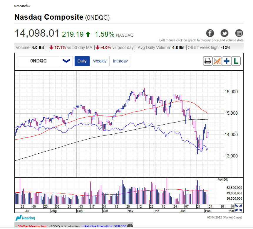 TTCK Mỹ quay trở lại Uptrend vào ngày thứ hai (31/1/2022) bởi ngày FTD (Bùng Nổ Theo Đà) sau khi Nasdaq Composite tăng 3.4%, và trở lại mức 14,000 điểm lần đầu tiên kể từ ngày 20 tháng 1