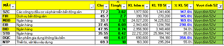 Danh sách vượt đỉnh 52 tuần đã có sự cải thiện nhẹ, nâng tổng con số vượt đỉnh lên 8 cổ phiếu. Ngân hàng, bất động sản và thiết bị, vật liệu xây dựng đang là 3 ngành có cổ phiếu góp mặt trong danh sách này.