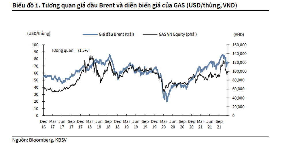 Còn riêng công ty chứng khoán KB, kì vọng giá dầu vẫn sẽ ở nền cao trong năm sau, dự kiến trung bình đạt 68 USD/thùng (so với mức trung bình USD61/thùng năm 2021E). Trong đó, PVGas (GAS được công ty chứng khoán KB khuyến nghị mua vào với giá mục tiêu VND 1250,000) là cổ phiếu ưa thích của họ bởi mức độ tương cao giá cổ phiếu cao với giá dầu thế giới và xu hướng Việt Nam dịch chuyển sang sử dụng khí đốt thiên nhiên và LNG nhập khẩu để sản xuất năng lượng điện. Bên cạnh đó, với việc giá dầu dầu trên mức hòa vốn 55 USD/thùng giúp hoạt động của các công ty thượng nguồn bao gồm CTCP Khoan và Dịch vụ khoan Dầu khí (PVD) và Dầu khí Việt Nam (PVS), khởi sắc hơn. Với PVD năm sau giàn khoan TAD bắt đầu thực hiện khoan hợp đồng với Shell Brunei sau 4 năm trì hoãn và với PVS là việc các hoạt động liên doanh FSO/FPSO và hoạt động M&C sẽ trở nên sôi động hơn.