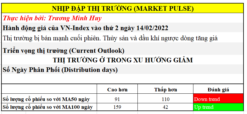 Chỉ số VN-Index đã mất MA20 ngày lẫn MA50 ngày. Trong khi hồi phục với thanh khoản thấp trong các phiên hồi phục trước đó thì phiên hôm nay lại là ngày giảm giá mạnh, đóng cửa tại mức giá thấp nhất ngày, cùng với thanh khoản cao hơn. Đây chính là hành động giá xấu xí ủng hộ cho bên gấu.