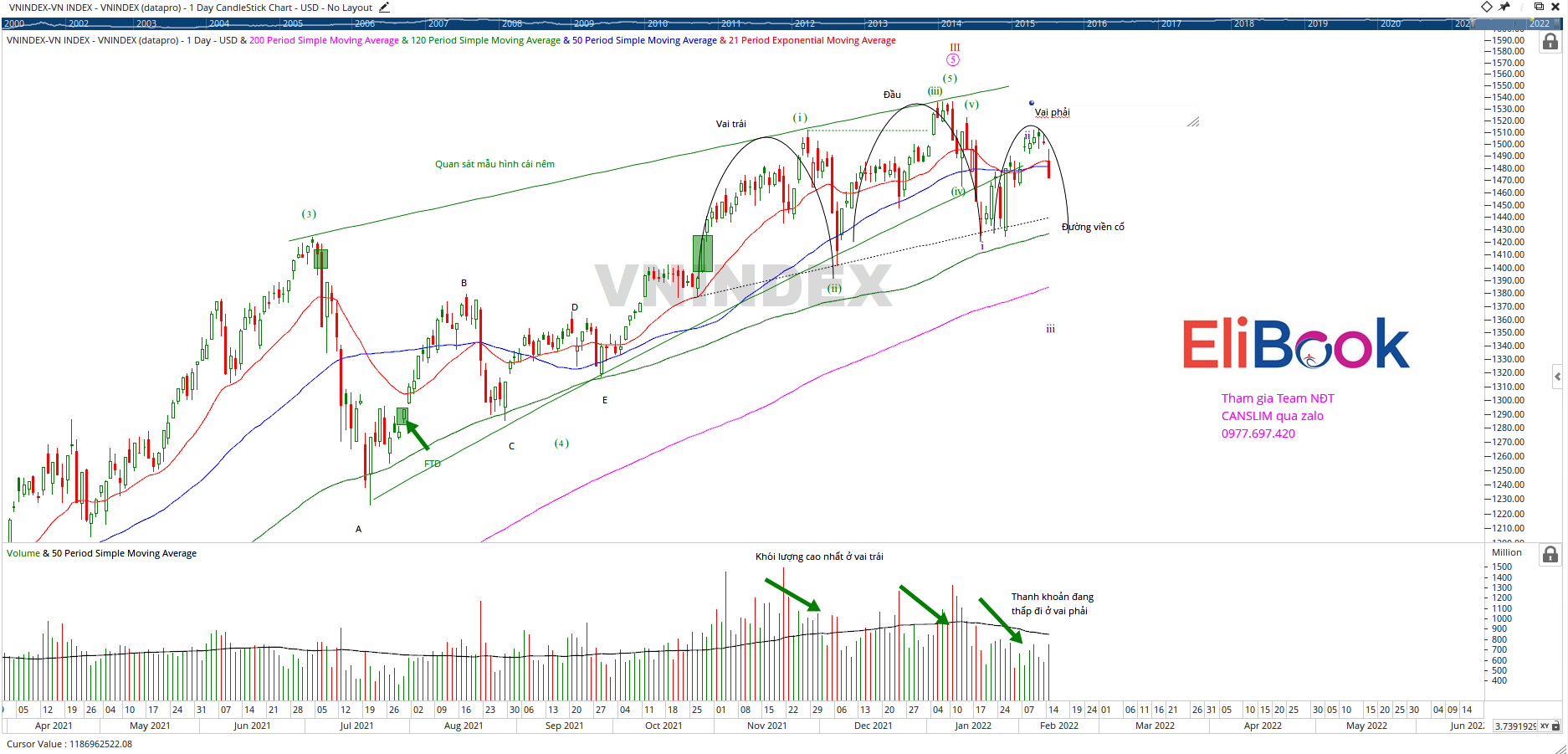 Trong báo cáo Vietnam Cycle dành cho Shark CANSLIM vào đầu năm 2022, Team NĐT CANSLIM đã yêu cầu các trader nên thận trọng quan sát đỉnh lớn trong tháng 1.2022 và xu hướng giảm giá này sẽ còn kéo dài ít nhất đến tháng 3.2022.