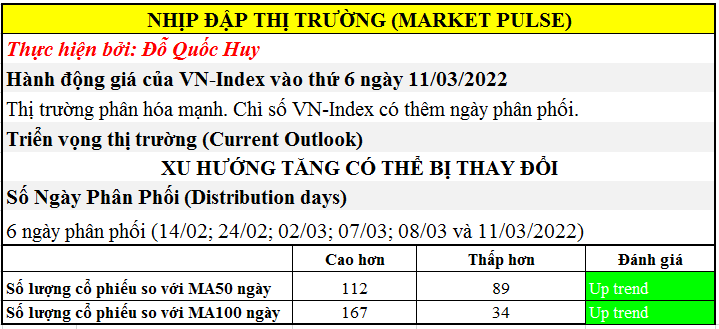Thị trường đang cho thấy sự phân hóa mạnh giữa các nhóm ngành trong bối cảnh những ngày giảm điểm của toàn bộ thị trường chung. Các cổ phiếu tăng trưởng cho thấy lực đỡ khá tốt khi liên tục bị bán mạnh vào những ngày giảm điểm. TTCK trong năm 2022 chắc chắn sẽ khó khăn hơn nhiều so với 2 năm trước sau khi dịch bệnh được kiểm soát và dòng tiền trở lại vào hoạt động kinh doanh.