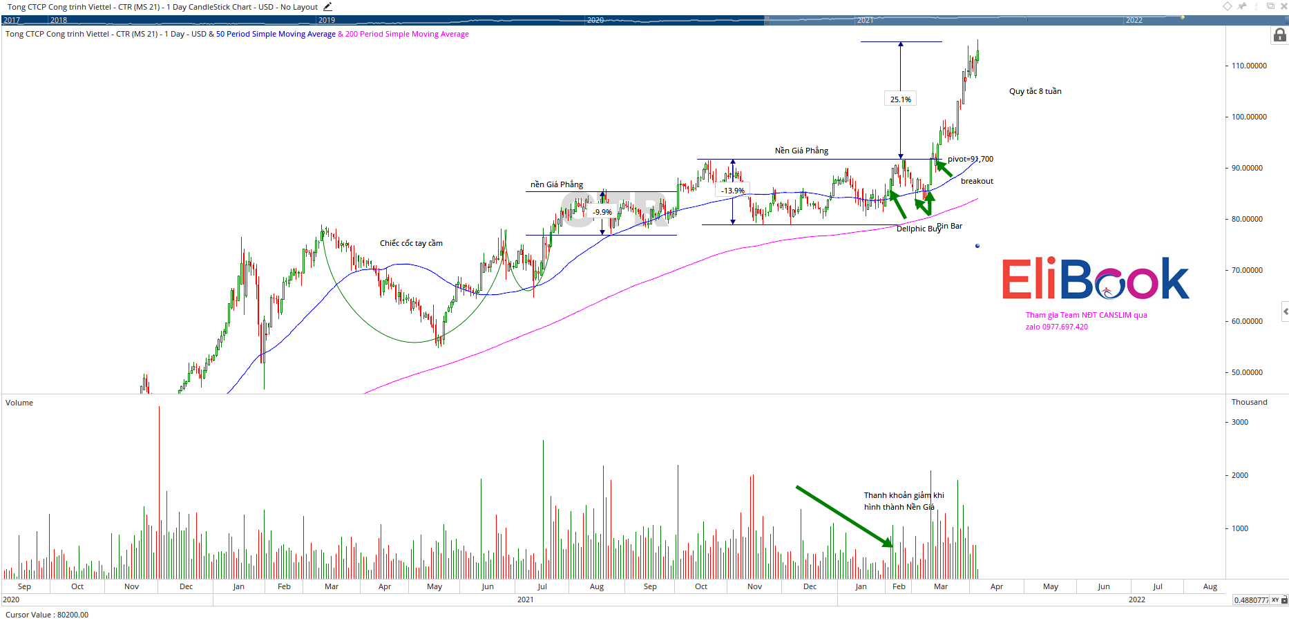 CTR +1.55% và đã tăng 23% kể từ điểm breakout Nền Giá Phẳng, kích hoạt quy tắc 8 tuần để nắm giữ các siêu cổ phiếu. Sóng ngành công nghệ đang xuất hiện.