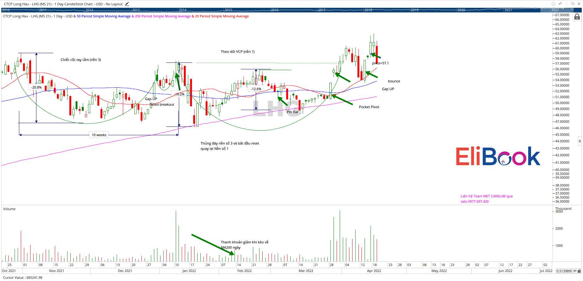 Vì vậy, Team NĐT CANSLIM cho rằng nên quan sát phản ứng với MA20 ngày trước khi có hành động bán. Nếu như LHG vẫn giữ được MA20 ngày thì vẫn còn cơ hôi cho uptrend.