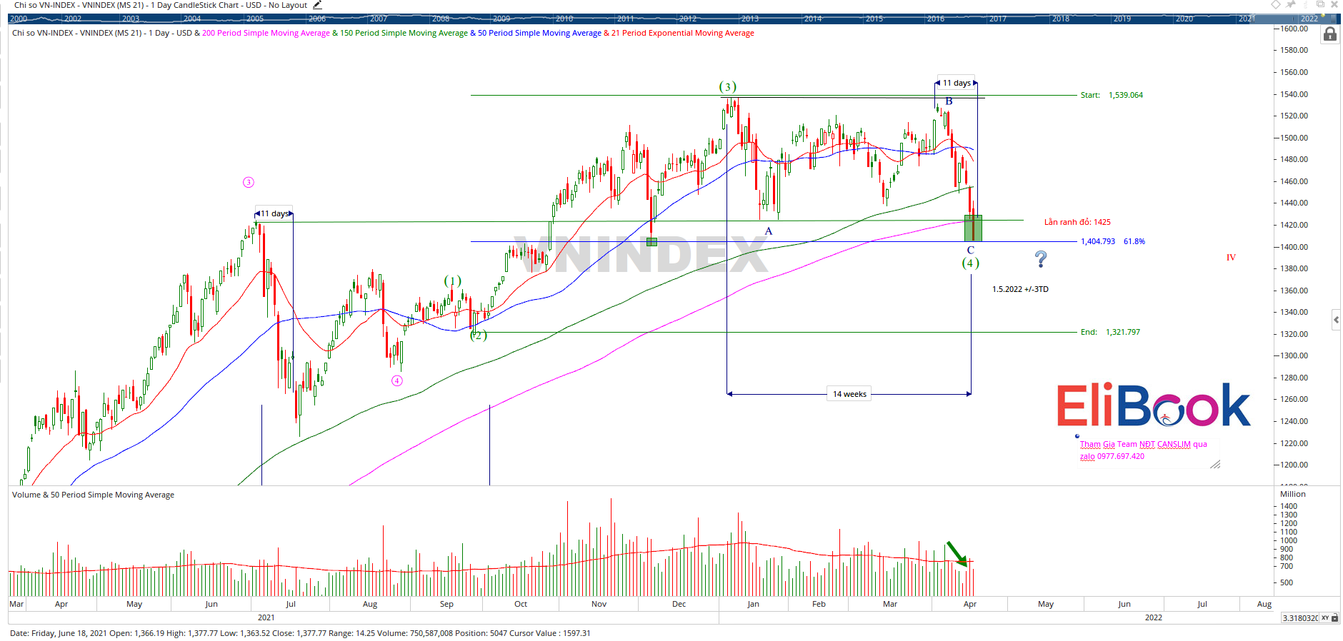 Cấu trúc sóng Elliott cho thấy, đợt giảm 2 tuần vừa qua có thể tương đương với sóng C trong cấu trúc sóng hiệu chỉnh (4).  Sóng (4) hiện đã hiệu chỉnh theo tỷ lệ Fibonacci 61.8% cho sóng (3).