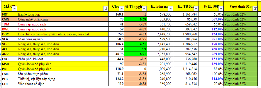 Số lượng cổ phiếu lập đỉnh 52 tuần bị thu hẹp đáng kể xuống còn 15 mã cổ phiếu trong phiên giao dịch ngày hôm nay. Sự thu hẹp trong độ rộng thị trường cho thấy vì sao thị trường yếu đi. Số lượng cổ phiếu nằm dưới MA50 ngày đã gấp đôi số lượng cổ phiếu nằm trên MA50 ngày.