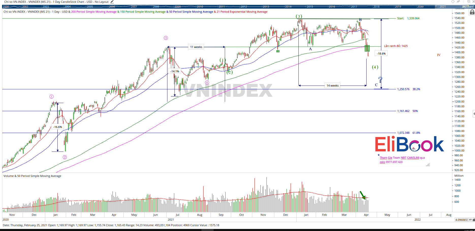 Nếu mức độ giảm giá trên -17% thì mức hỗ trợ có thể là 1250 điểm, tức đáy Covid vào tháng 7.2021.