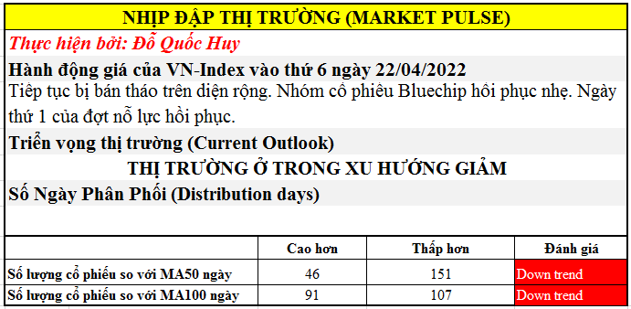 Thị trường hiện tại vẫn tiềm ẩn quá nhiều rủi ro và chúng ta đang chờ đợi ngày Bùng nổ theo đà để xác nhận xu hướng chung quay trở lại Uptrend. Tuy nhiên sau khi chuỗi Vi phạm dọc xuất hiện, chúng tôi nghi ngờ về việc ngày FTD nếu có xảy ra cũng sẽ dễ bị thất bại. Mục tiêu của đợt nỗ lực hồi phục của chỉ số VN-Index lần này là MA200 ngày –tương đương với vùng 1,422 điểm.