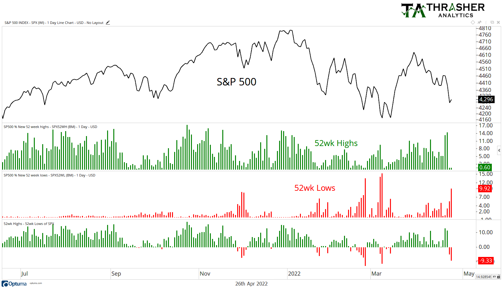 Số liệu NH-NL (Đỉnh 52 tuần – Đáy 52 tuần) cho thấy đang là con số âm, cho thấy áp lực giảm giá vẫn còn. Báo cáo quý 1 của các công ty FANG khá xấu. Google có lợi nhuận quý 1 kém hơn so với kỳ vọng và cổ phiếu lập tức giảm giá sau khi tin lợi nhuận ra. Thị trường ở trong xu hướng giảm và việc đứng ngoài thị trường vẫn tốt hơn.