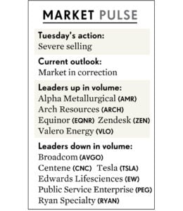 Vào ngày thứ 6 tuần trướ, Nhật Báo IBD lần thứ ba trong năm nay hạ triển vọng thị trường xuống đèn đỏ “Market in Correctio). Vì thế, việc thị trường bị bán tháo mạnh trong ngày thứ ba chẳng có gì đáng ngạc nhiên.