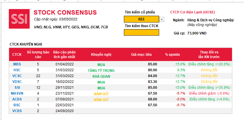 Nhưng thật bất ngờ, Ngày 4/5/2022, CTCK VNDirect đưa ra mục tiêu giá cao nhất là 98,300, khi dự phóng lợi nhuận đạt 2183 tỷ đồng, tăng 18%. Lý do, REE đang đẩy mảng năng lượng tái tạo và sẽ đóng góp tích cực từ năm 2022. Đây là lần đầu VNDirect đưa ra đánh giá về REE.
