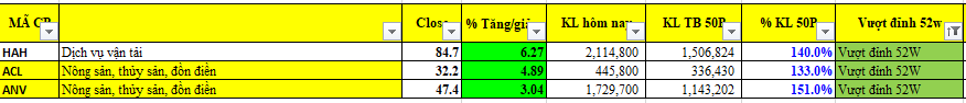 Khẩu vị của dòng tiền thông minh đang chuyển hướng sang các cổ phiếu có giá trị vốn hóa lớn, kết quả kinh doanh tích cực. Do đó, không ngạc nhiên khi sóng ngành đang xuất hiện ở nhóm cổ phiếu CẢNG BIỂN, THỦY SẢN, BÁN LẺ. Một số cổ phiếu đang cố gắng tăng điểm hôm nay thuộc về các ngành này như PNJ +0.3%, MWG +0.2%, FRT +0.77%, CMX +1.9%, ANV +3% trong khi VHC đánh mất đà tăng và đóng cửa tham chiếu.