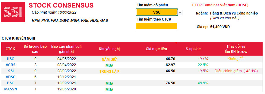 Không có CTCK nào nâng triển vọng dự báo lợi nhuận hay mục tiêu giá trong thời gian 3 tháng gần đây. CTCK HSC và SSI định giá VSC ở giá 46,000, riêng CTCK VCBS lạc quan hơn dự phóng ở mức 62,970