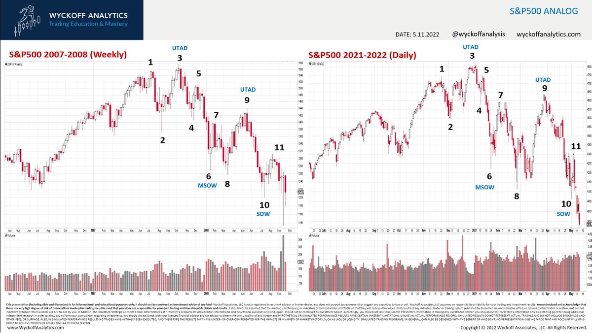 Hội phân tích Wyckoff cho rằng, thậm chí ngay cả khi ES tạo ra một nỗ lực hồi phục, thì bối cảnh chính vẫn là bearish. Giống như năm 2008, vẫn còn nhiều động lực giảm giá mạnh hơn ẩn đằng sau lực bán của các nhà đầu tư tổ chức. Giống như năm 2008,hãy tăng nắm giữ tiền mặt. Việc giao dịch nặng động là ngu ngốc.