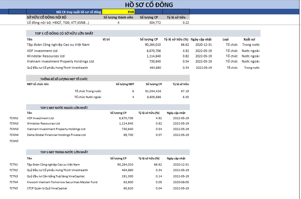 PHR có sự mua vào nhẹ 85,000 cổ phiếu của các cổ đông lớn (Vina Capital) trong 3 tháng gần đây. Con số này khá thấp so với thanh khoản của công ty nên không đáng kể.