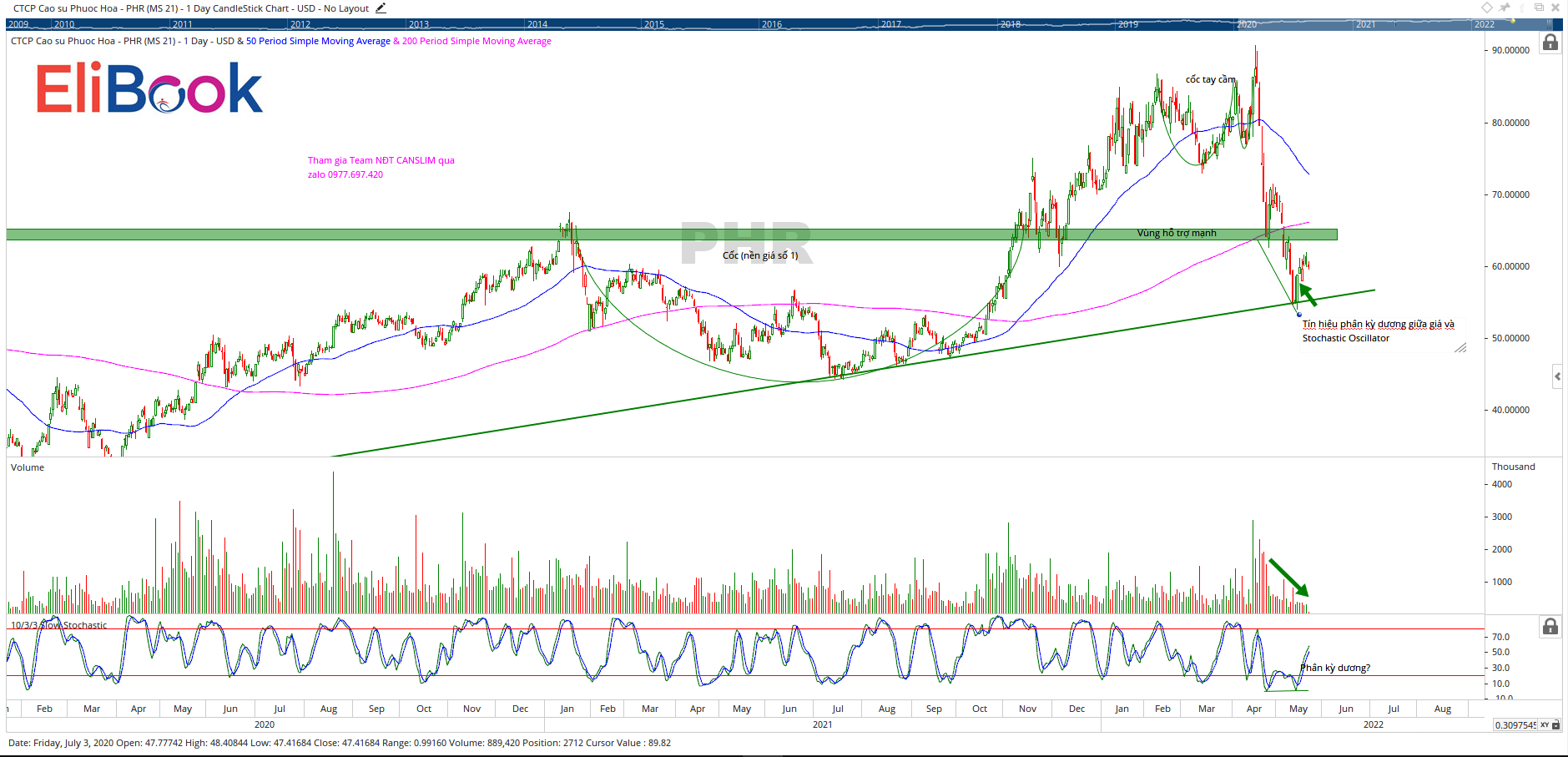 PHR đã để mất MA200 ngày và cũng nằm dưới MA50 ngày. Tuy nhiên, quá trình giảm giá lại đi kèm với khối lượng thấp cho thấy lượng cung không còn nhiều.