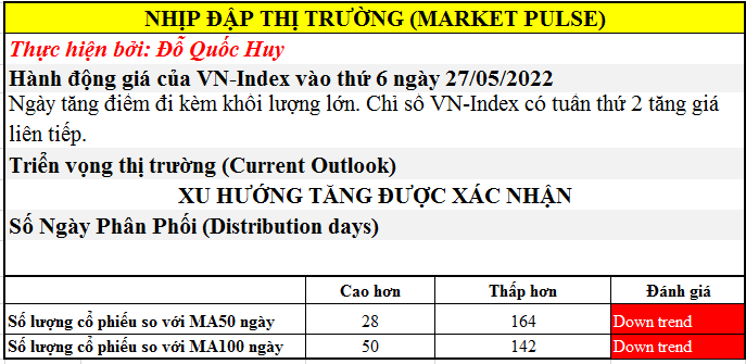 Độ rộng thị trường cho thấy sự cải thiện hơn so với tuần trước, so với tuần trước khi chưa có ngày FTD thì chỉ có 10 cổ phiếu hoạt động trên MA50 ngày. Tuần này ghi nhận sự cải thiện nhiều hơn khi có 28 cổ phiếu nằm trên MA50 ngày.