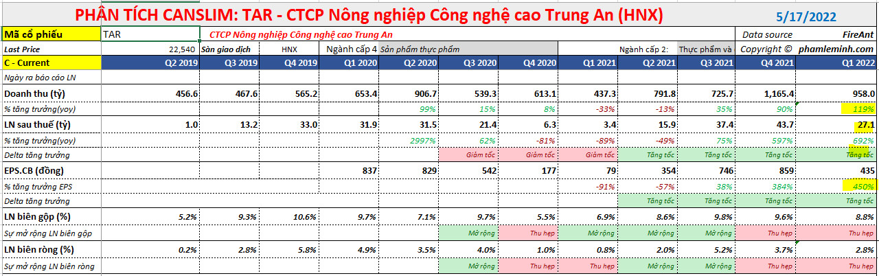 Bên cạnh yếu tố kỹ thuật, một cổ phiếu leader cũng cần đảm bảo về yếu tố cơ bản. TAR có sự tăng tốc trong tăng trưởng doanh thu (+35%, +90% và +119%) và tăng trưởng lợi nhuân ( +75%, +597%, +692%). Biên lợi nhuận của doanh nghiệp này không mở rộng do phải hỗ trợ phí vận chuyển cho khách hàng.
