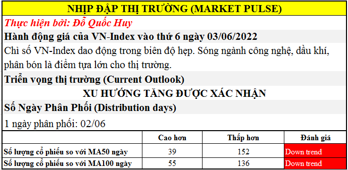 Với chỉ một ngày phân phối nhẹ, nhà đầu tư chưa cần đưa ra các chiến lược phòng thủ. Hãy tự tin giải ngân tiền vào các cổ phiếu breakout khỏi nền giá chặt chẽ đi kèm tốc độ tăng trưởng lợi nhuận cao. Nếu trong Uptrend mà bạn không kiếm được tiền thì đừng mơ kiếm được tiền trong Downtrend. Thời gian là ngắn ngủi, vì vậy hãy nên cố gắng tận dụng nó một cách triệt để để tìm kiếm lợi nhuận trên thị trường.