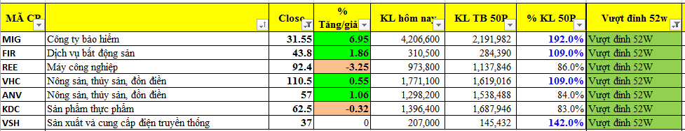 Danh sách cổ phiếu vượt đỉnh lần này tăng lên với tổng cộng 9 cổ phiếu. Bảo hiểm, thủy sản, tiện ích công cộng và thực phẩm là 4 nhóm ngành có cổ phiếu vượt đỉnh đầu tiên.