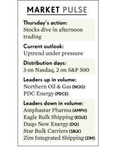 Một khía cạnh khác về sức khỏe thị trường chung- bên cạnh số ngày phân phối- là thành tích hoạt động của các cổ phiếu leader. Điều tiêu cực là các điểm breakout gần đây đều rất chật vật hoặc thất bại. Amphastar Pharmaceuticals (AMPH) rớt hơn 21% vào ngày thứ năm. Giá cổ phiếu này đã kích hoạt quy tắc cắt lỗ tự động là 7%-8% từ điểm mua mẫu hình Chiếc Cốc Tay Cầm, sau khi vừa mới breakout vfo ngày thứ ba.