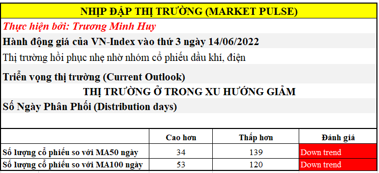 Team NĐT CANSLIM đã hạ triển vọng thị trường xuống đèn đỏ khi đáy ngày FTD 1235 bị phá thủng, khiến khả năng thất bại của đợt hồi phục từ đáy tháng 5 là 90%. Tuy nhiên, một khi mức đáy 1155 còn được giữ, thì vẫn còn có cơ hội nhỏ để đưa thị trường quay lại xu hướng tăng (Resume Uptrend) nếu đáy ngày FTD giành lại được.