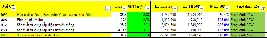 Dù thị trường tăng điểm nhưng độ rộng thị trường ngày hôm nay vẫn không được cải thiện tích cực. Theo đó, số lượng cổ phiếu giảm vẫn gấp 1.6 lần số cổ phiếu tăng trên sàn HOSE. Thị trường vẫn chỉ có 5 cổ phiếu còn giữ được đỉnh 52 tuần.
