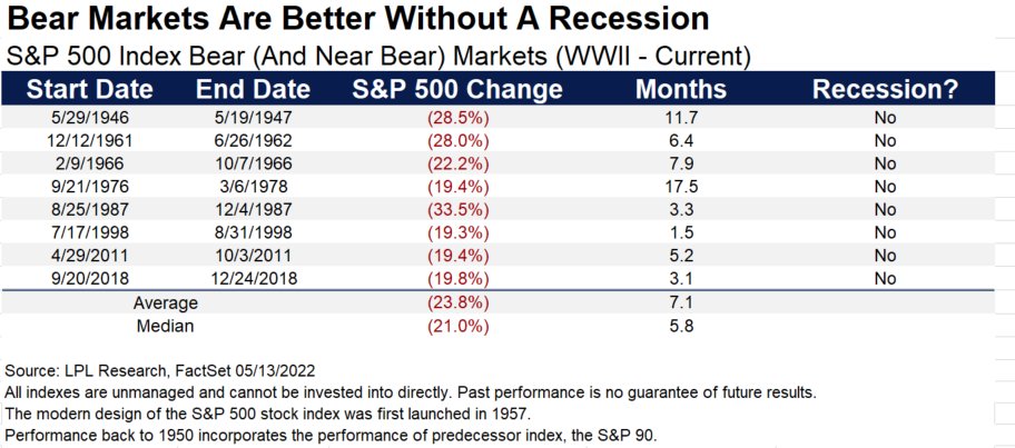 Nếu thị trường chứng khoán giảm mà không có con gấu, mức giảm trung bình của chỉ số SP500 là 23.8%. Trong khi thị trường từ đầu năm tới nay đã giảm 23.6%. Vấn đề lúc này là thị trường có chiết khấu vấn đề suy thoái kinh tế chưa.