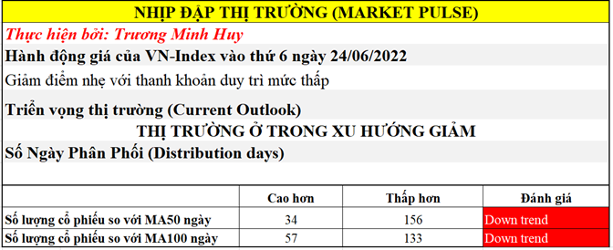 Chỉ số VN-Index tạo mức đáy thấp nhất vào giữa tuần ở mức 1162 điểm và chỉ cao hơn so với đáy cũ tháng 5 khoảng 6-7 điểm mà thôi, nhưng tính theo giá đóng cửa thì đã tạo đáy thấp nhất vào ngày thứ tư (22/6/2022). Nỗ lực tăng giá bất ngờ xuất hiện vào ngày thứ năm mang tới hy vọng thị trường tạo đáy.