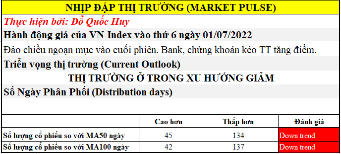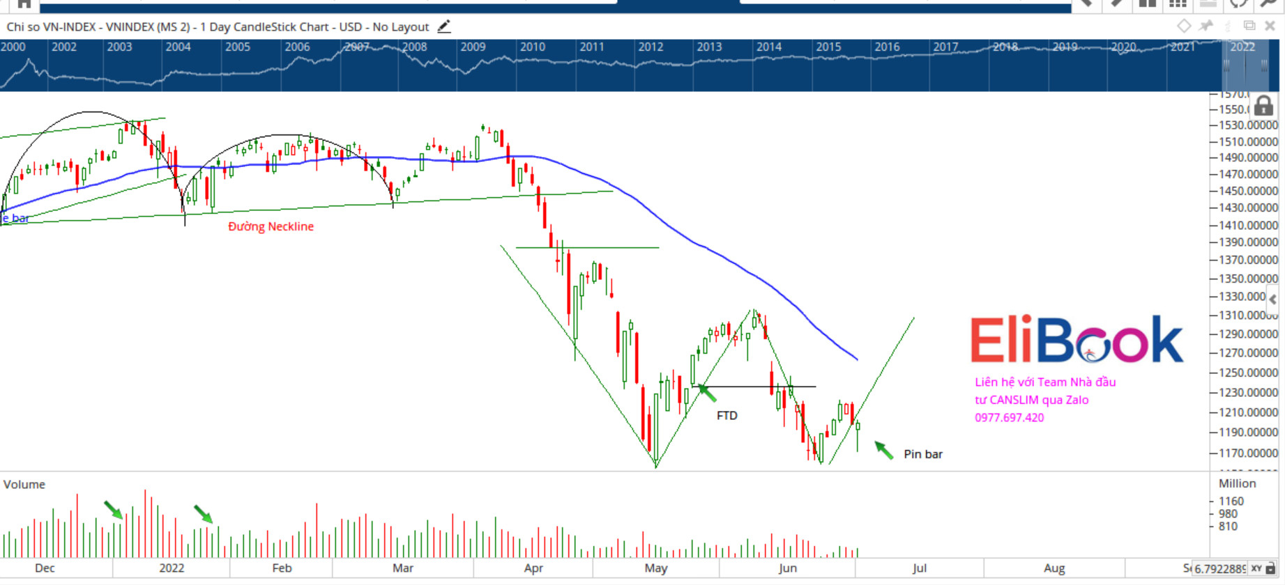 Nếu thị trường tăng giá ngay lập tức vào phiên giao dịch tiếp theo, chứng tỏ quá trình test cung đã diễn ra thành công với khối lượng thấp. Có thể VN-Index sẽ bước vào một Uptrend lớn bất chấp việc FED có tăng lãi suất trong kỳ họp vào tháng 7 hay nhiều ý kiến cho rằng suy thoái kinh tế sẽ xảy ra.