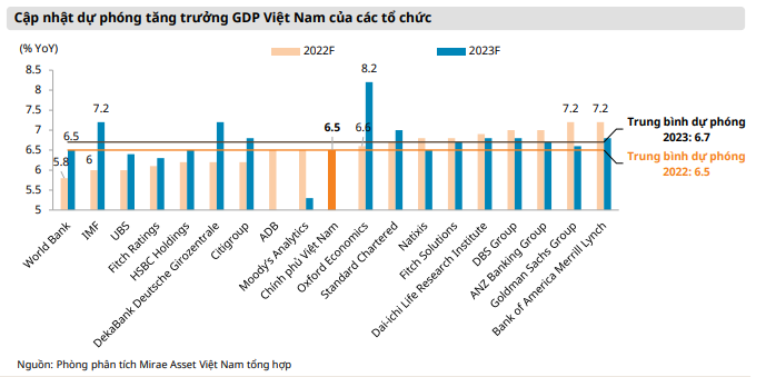 - Các tổ chức tài chính trên thế giới dự phóng tốc độ tăng trưởng GDP trong năm 2022 trung bình ở mức 6.5%. Riêng CTCK Miare Asset dự phóng tăng trưởng GDP năm 2022 ở mức 5.9% trong kịch bản cơ sở và 6.3% trong kịch bản khả quan.(Còn tiếp)