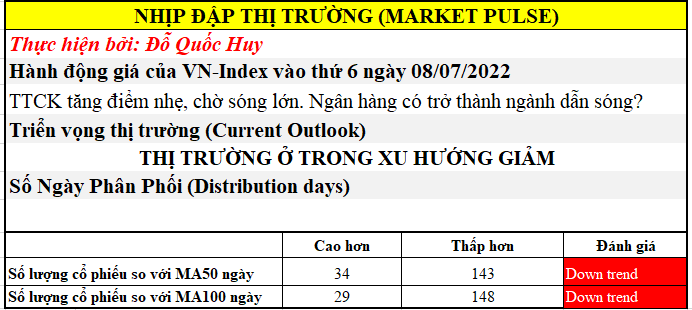 Chỉ số VN-Index còn cách khá xa MA50 ngày nhưng điều đó không quá quan trọng ngày tại thời điểm này. Chỉ cần có sự xuất hiện của Ngày Bùng nổ theo đà (FTD), xu hướng tăng giá sẽ được xác nhận. Trước mắt, nhà đầu tư cần tập trung quan sát sự xuất hiện của ngày FTD thường xảy ra ở ngày thứ 4 đến ngày thứ 7 của mỗi đợt nỗ lực hồi phục, có một số trường hợp ngày FTD vẫn xuất hiện khá trễ.