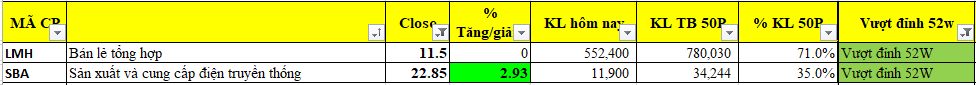 Hôm nay số lượng cổ phiếu phá đáy 52 tuần không có sự thay đổi, tổng cộng có 9 cổ phiếu phá đáy và có 2 cổ phiếu tham gia vào danh sách cổ phiếu vượt đỉnh 52 tuần.