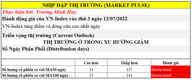 Khi chưa có ngày FTD và chỉ số VN-Index vẫn chưa lấy lại EMA 21 ngày, xu hướng giảm giá vẫn còn tiếp diễn. Tuy nhiên, việc chỉ số VN-Index lấy lại đáy ngày 16.5.2022 và 23.6.2022 mang tới hy vọng tạo ra bẫy giảm giá để lật ngược thế cờ.