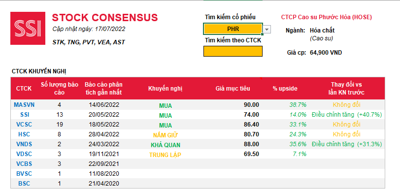 CTCK HSC trong bản bình luận ngày 15/7/2022, ngay sau khi PHR công bố báo cáo quý II, vẫn giữ khuyến nghị tích cực và duy trì giá mục tiêu 80,400. Đây là giá mục tiêu mà HSC đã đưa ra khuyến nghị vào tháng 4.2022.