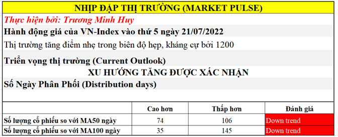 Ngưỡng 1200 điểm đang tạo ra sự kháng cự nhất định đối với VN-Index. Tuy nhiên, nhìn chung thị trường vẫn đang được hỗ trợ bởi một số leader bán lẻ, bất động sản KCN và chăm sóc sức khỏe.