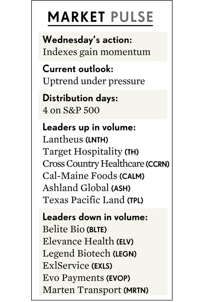 Cũng vào ngày thứ tư, chỉ số Nasdaq đã xóa sạch hai ngày phân phối vì quy tắc tăng giá 5% và không còn ngày phân phối nào cả. Mặc dù nó vẫn iarm 24% trong năm nay, các nhà đầu tư đang nhìn thấy khả năng đảo chiều đi lên.