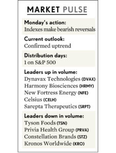 The Philadelphia Semiconductor Index giảm 1.6% khi các cổ phiếu bán dẫn bị bán mạnh. Nvidia (NVDA) có khoảng trống giảm giá với khối lượng ớn sau khi cắt giảm dự báo doanh thu quý hiện tại. Nó đã lấy đi nhiều mức lãi từ cú bật trong 5 tuần, tính từ đáy 52 tuần.