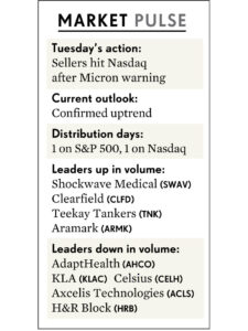 Bên bán tiếp tục đổ vào thị trường trong ngày thứ ba, khi thị trường bị tổn thương bởi thông tin doanh số yếu kém từ công ty sản xuất chip Micron Technology (MU)