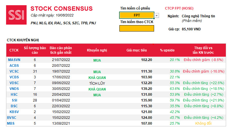 Sự suy giảm gần đây của TTCK khiến các công ty chứng khoán đưa ra kỳ vọng khá thấp đối với FPT. MASVN và VCSC trong báo cáo tháng 7 đã giảm giá mục tiêu đối với FPT.