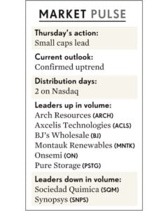Các cổ phiếu tăng trưởng hàng đầu hoạt động tốt vượt trội vào ngày thứ năm, khi Innovator IBD 50 ETF (FFTY) tăng 1.4%. Trong chỉ số IBD 50, cổ phiếu Onsemi (ON) tăng 7.3%, giành lại điểm mua 71.36 của mẫu hình Vùng Củng Cố Dài Hạn.