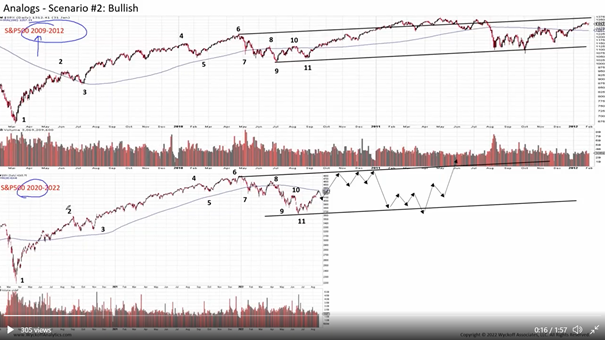 Theo hiệp hội Wyckoff Analyst, kịch bản thị trường hiện tại 2020-2022 có vẻ tương đồng với năm 2009-2012. Vì thế, sự điều chỉnh hiện tại là ngắn hạn và có khả năng tiếp tục xu hướng tăng giá mới.