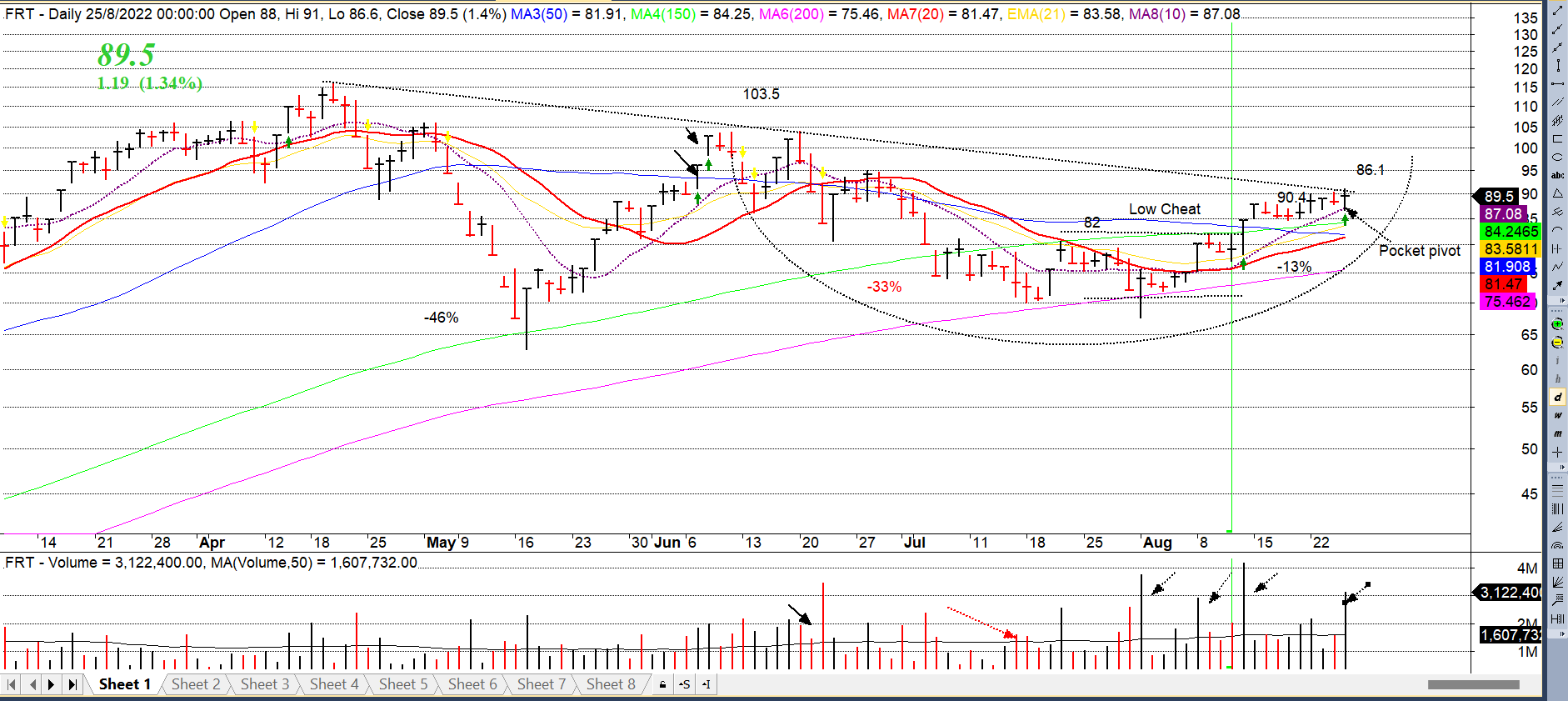 Với “Xu hướng tăng được xác nhận” đi kèm với 2 ngày phân phối yếu, trader được phép giao dịch năng động và thực hiện các chiến lược mua vào. Chỉ khi nào số ngày phân phối tiếp tục tăng lên nhanh lên con số 4,5 hoặc 6 thì lúc đó chúng ta mới thực sự cần thực hiện các chiến lược phòng thủ như chốt lời sớm, cắt lỗ nhanh và tăng tỷ trọng nắm giữ tiền mặt.