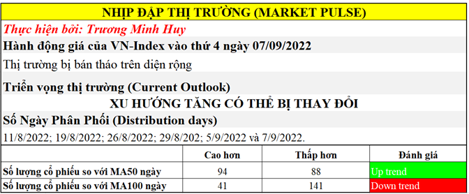Như vậy, đây là ngày phân phối thứ 6 và có tới 4 ngày phân phối xuất hiện trong 2 tuần gần đây, khá dày đặc. Điều này buộc Team NĐT CANSLIM hạ triển vọng thị trường xuống đèn vàng, “XU HƯỚNG TĂNG CÓ THỂ BỊ THAY ĐỔI”. Điều này có nghĩa trader thân trọng về tình hình thị trường sắp tới và sẵn sàng cắt lỗ nhanh để thoát khỏi thị trường nếu tiếp tục phá thủng các ngưỡng hỗ trợ mạnh.