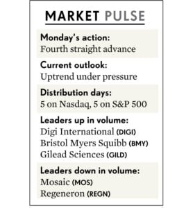 Báo cáo lạm phát bất ngờ có thể làm chấn động thị trường tài chính. Trước thời điểm ra tin quan trọng, các nhà đầu tư nên có sự cẩn trọng. Nhật Báo IBD vẫn duy trì thị trường ở triển vọng đèn vàng, tức “Uptrend Under Pressure (Xu Hướng Tăng Có Thể Bị Thay Đổi”), tức có sự tham gia thị trường ở mức vừa phải và có tiền mặt đủ lớn.