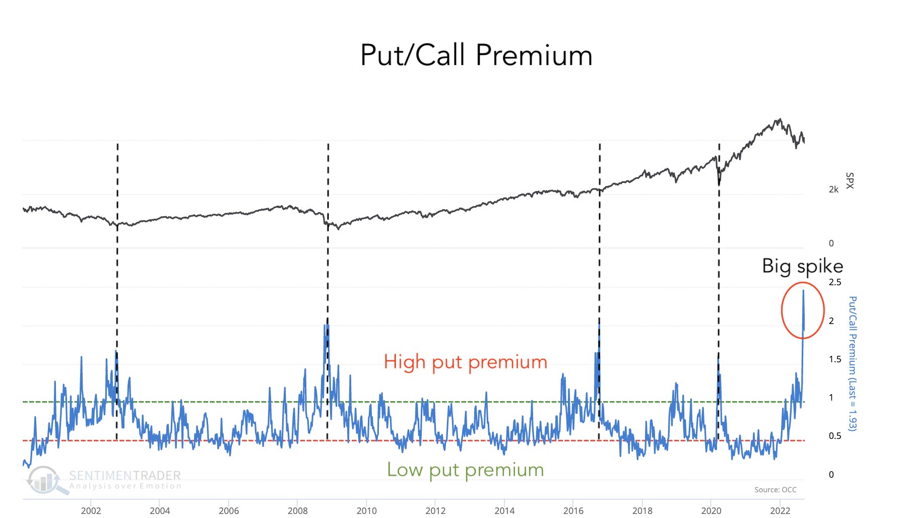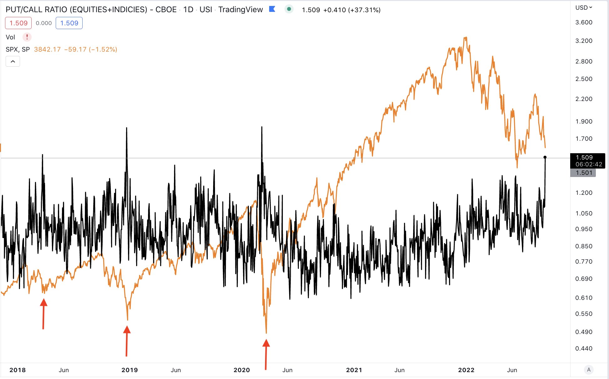 Các chỉ báo Sentiment (Tâm lý thị trường) cho thấy khả năng tạo đáy. Ví dụ như Put/Call Ratio đã vượt con số 1.5, nơi thường báo hiệu khả năng tạo đáy