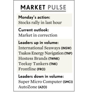 Cả ba chỉ số chứng khoán lấy lại mức giảm của ngày thứ sáu nhờ cú tăng giá cuối ngày thứ hai.
